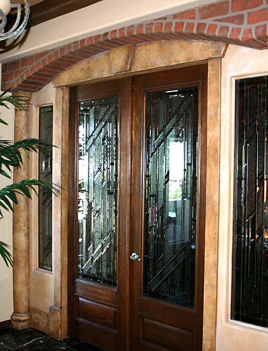 - Glass Panels are available with your choice of black patina or zinc metal caming and are triple insulated for superior energy efficiency and added security.